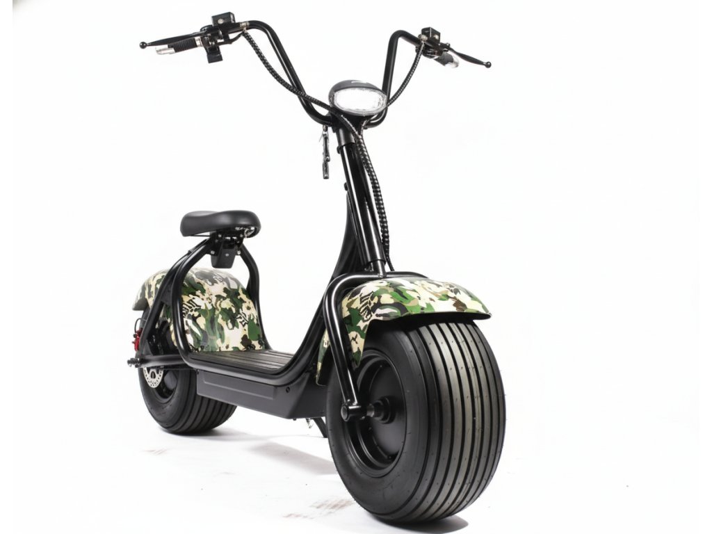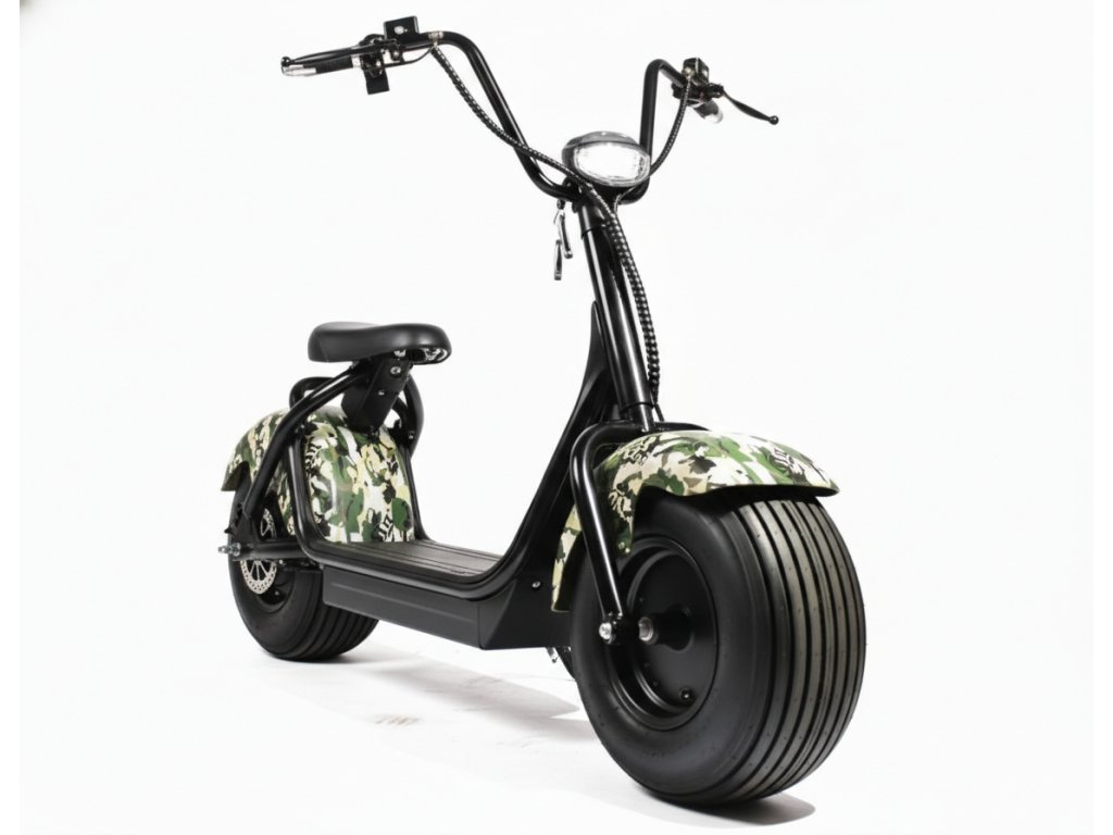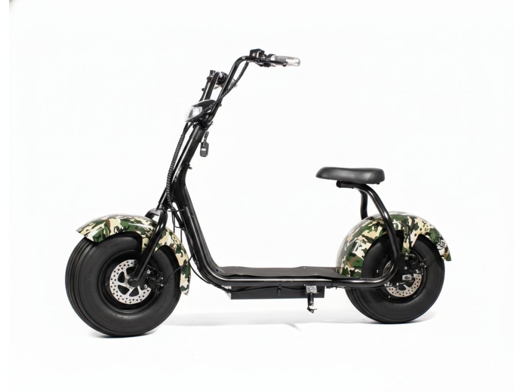 ECO HIGHWAY 3 rychlostní stylová koloběžka 1000W s LED světlem, alarmem a displejem, maskáč