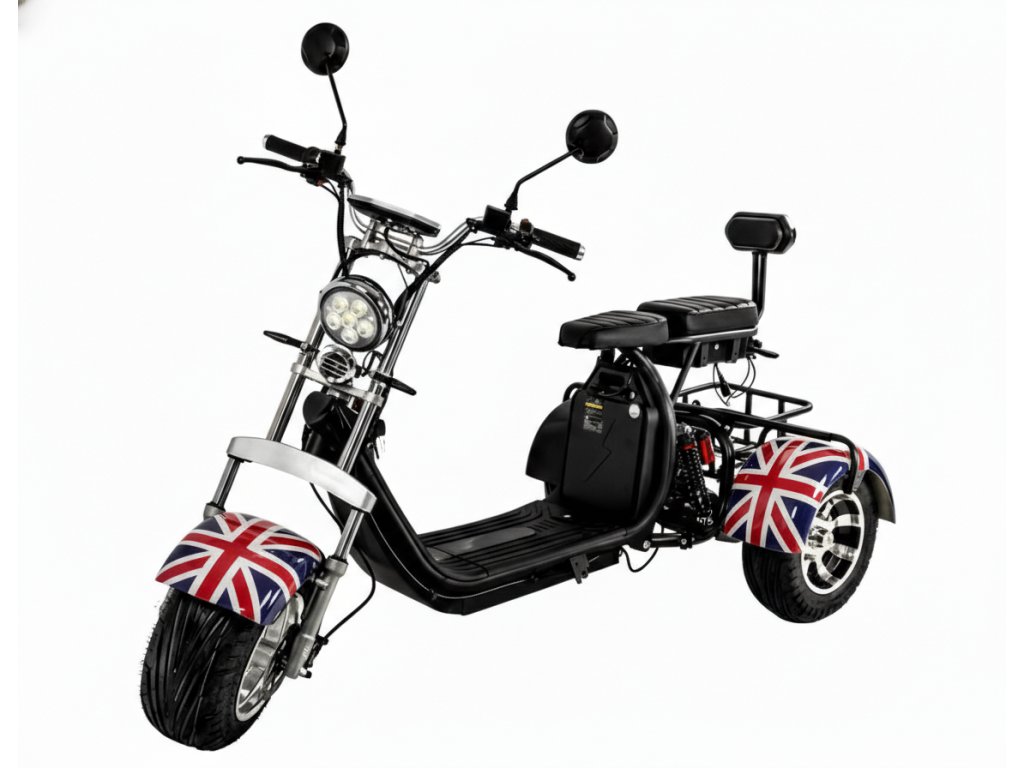 ELEKTRICKÁ TŘÍKOLKA OLTO GOLEM 2000W SE DVĚMA BATERIEMI, ZPÁTEČKOU A VELKÝM KOŠÍKEM, Vlajka