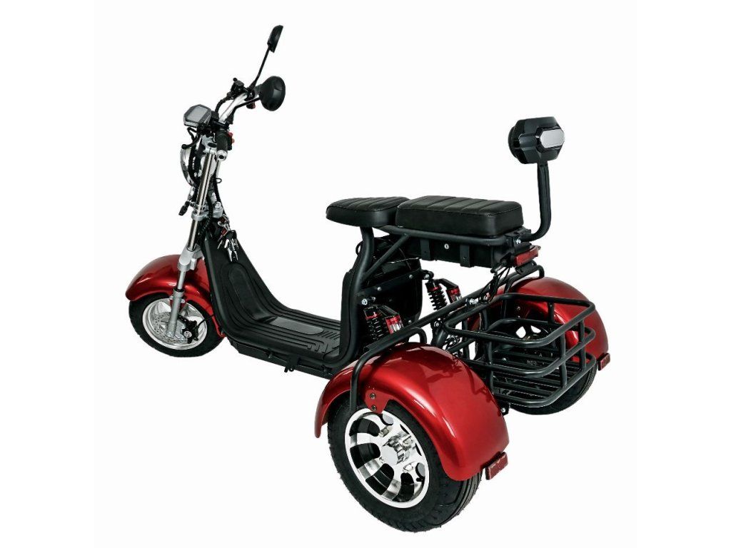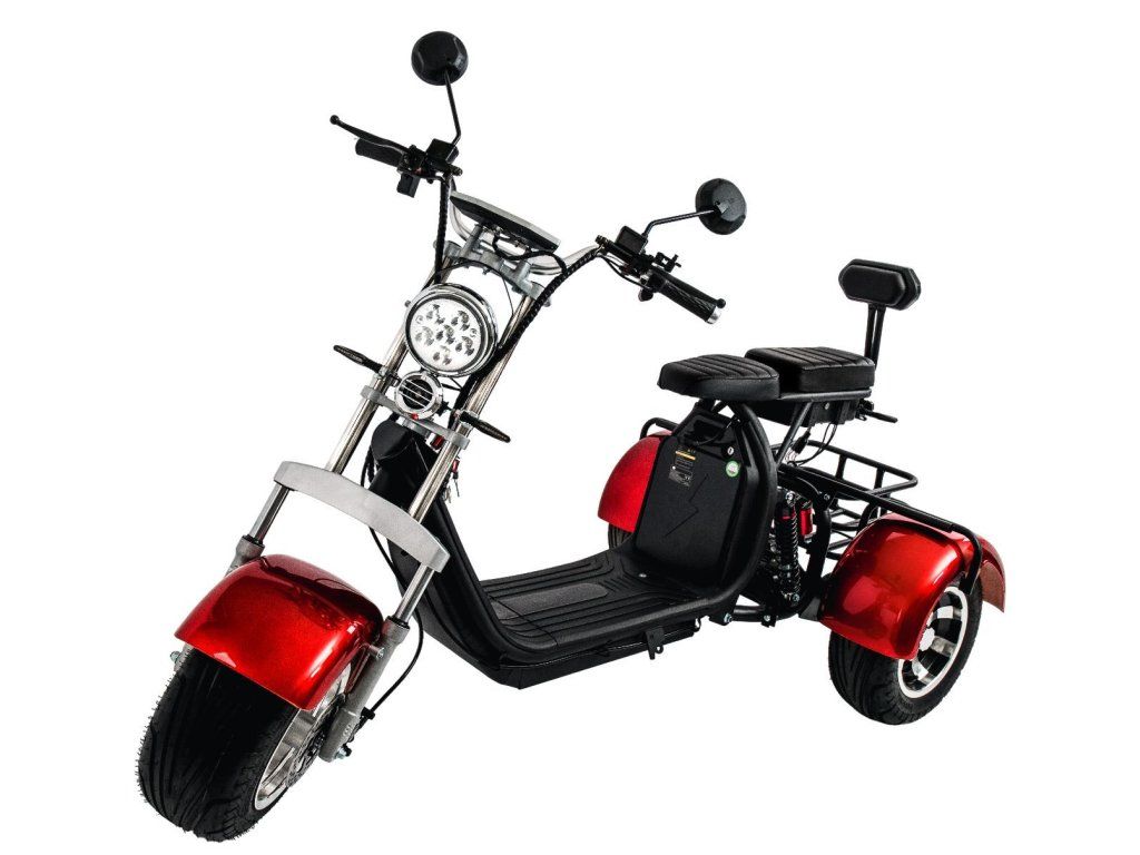 Elektro tříkolka Golem 2000W - dojezd 62 km, 25Ah baterie, zpátečka, košík, OLTO, červená