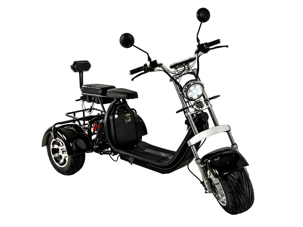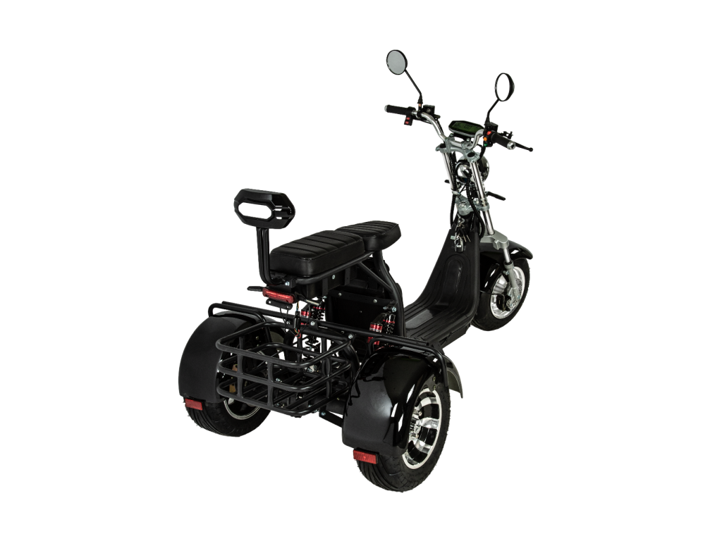 Elektro tříkolka Golem 2000W až 125 km dojezd, 2x25Ah baterie, OLTO, se zpátečkou a velkým košíkem, černá