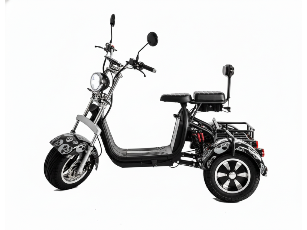 Elektro tříkolka Golem 2000W bez baterie, zpátečka, košík, OLTO, lebky