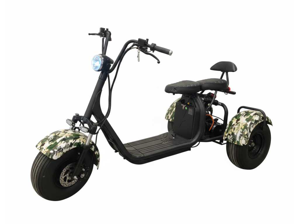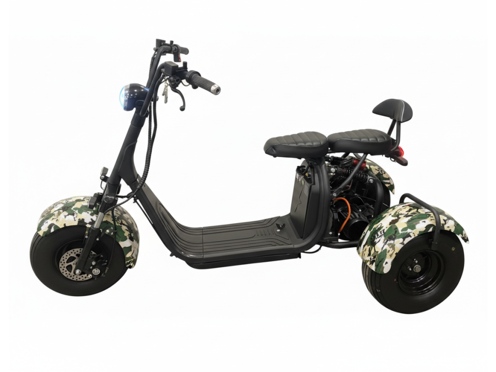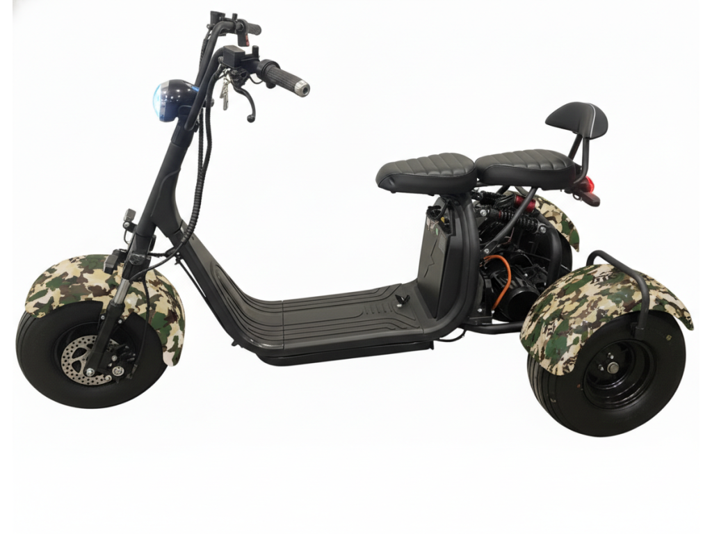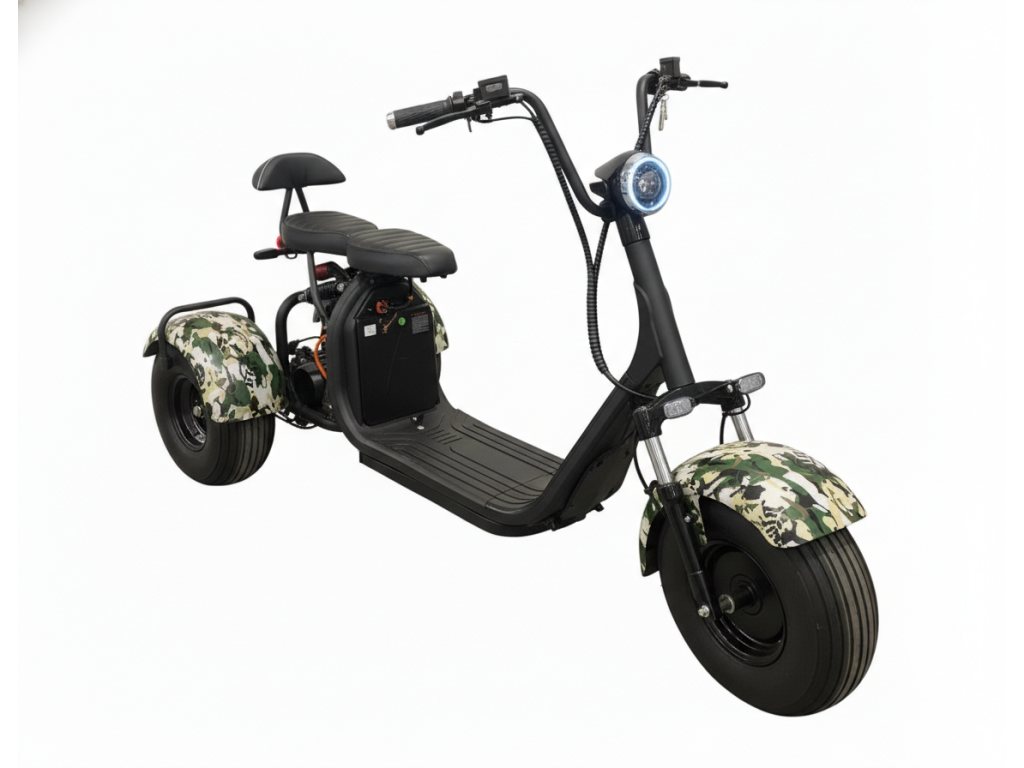 Elektro tříkolka Sport 2000W až 125 km dojezd 2x25Ah baterie, maskáč