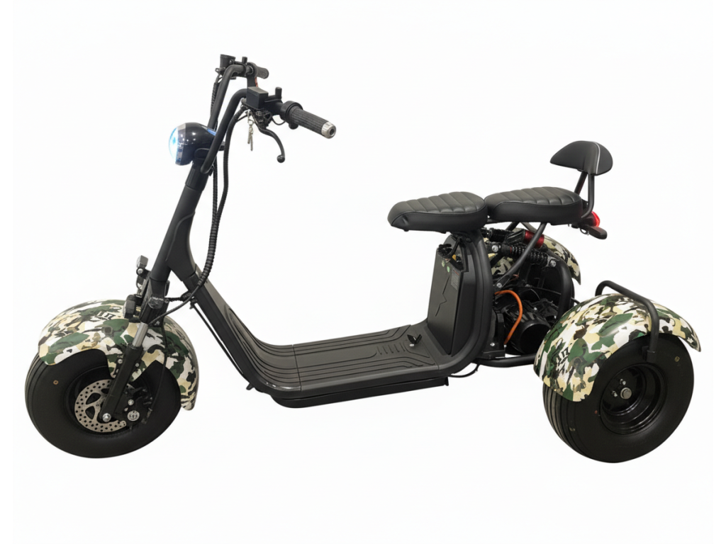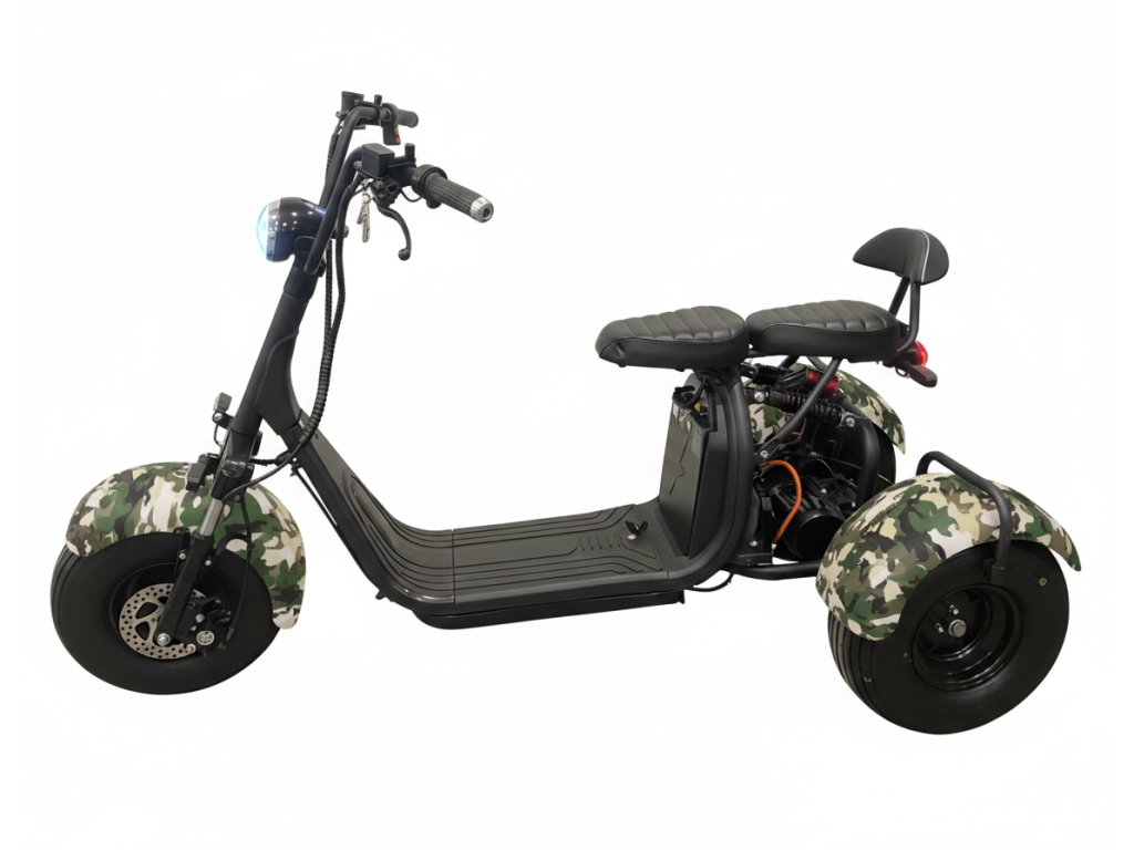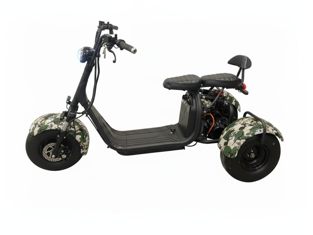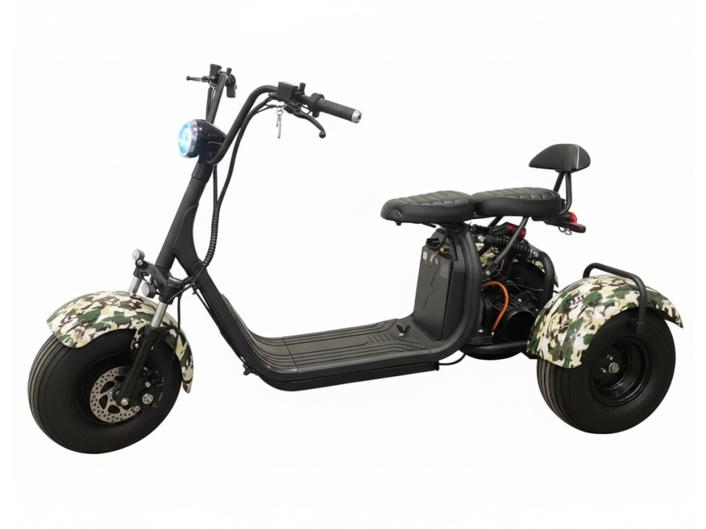 Elektro tříkolka Sport 2000W až 125 km dojezd 2x25Ah baterie, maskáč