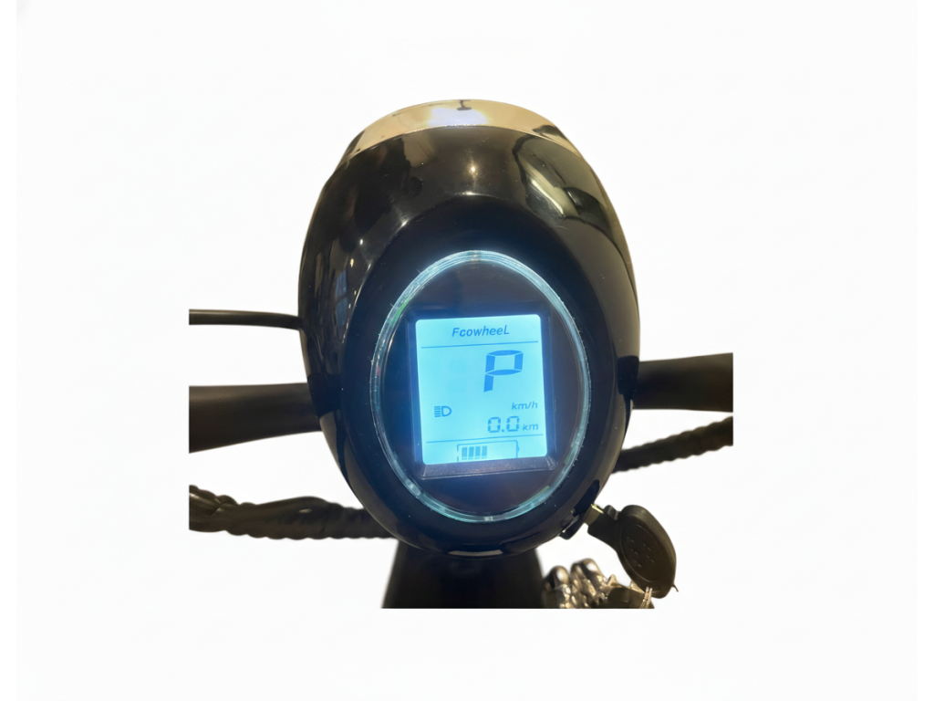 - Tachometr s indikací stavu baterie, počtu najetých km a ukazatelem blinkrů