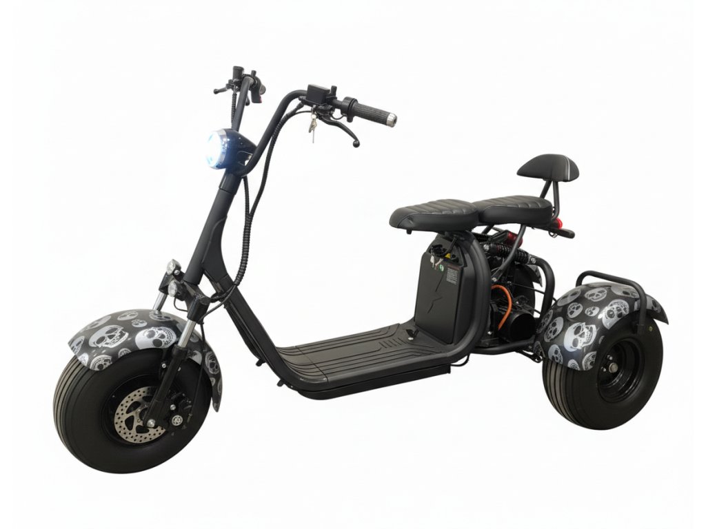 Elektro tříkolka Sport 2000W s jednou 12Ah baterií, lebka