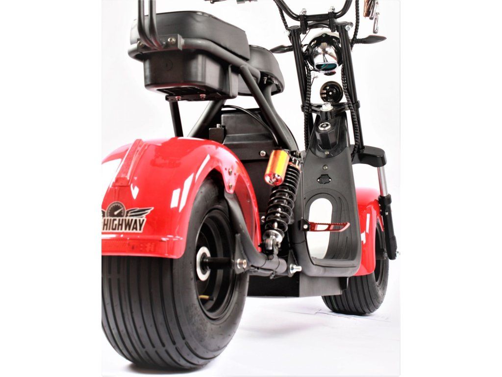 Elektrokoloběžka 2000W - dojezd 125 km, 2x25Ah baterie, zpátečka, alarm, ECO HIGHWAY Black Line, červená