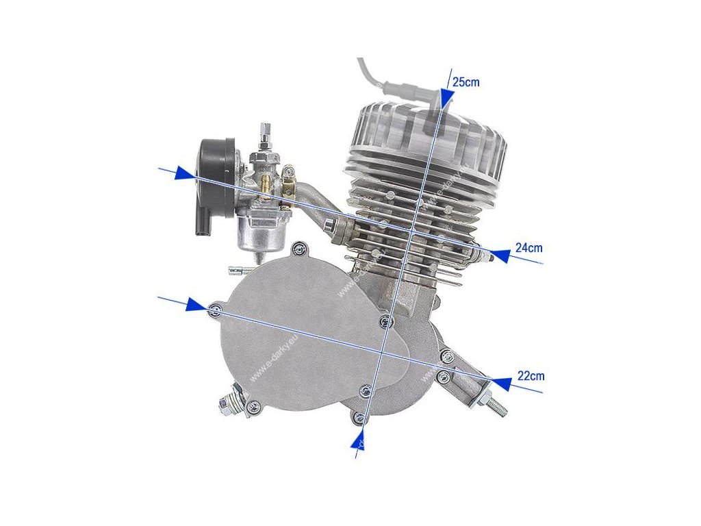 - Lze namontovat na většinu rámů jízdních kol vyjma nových 32 drátových kol a s kotoučovou brzdou (rozměry motoru ve fotodokumentaci)