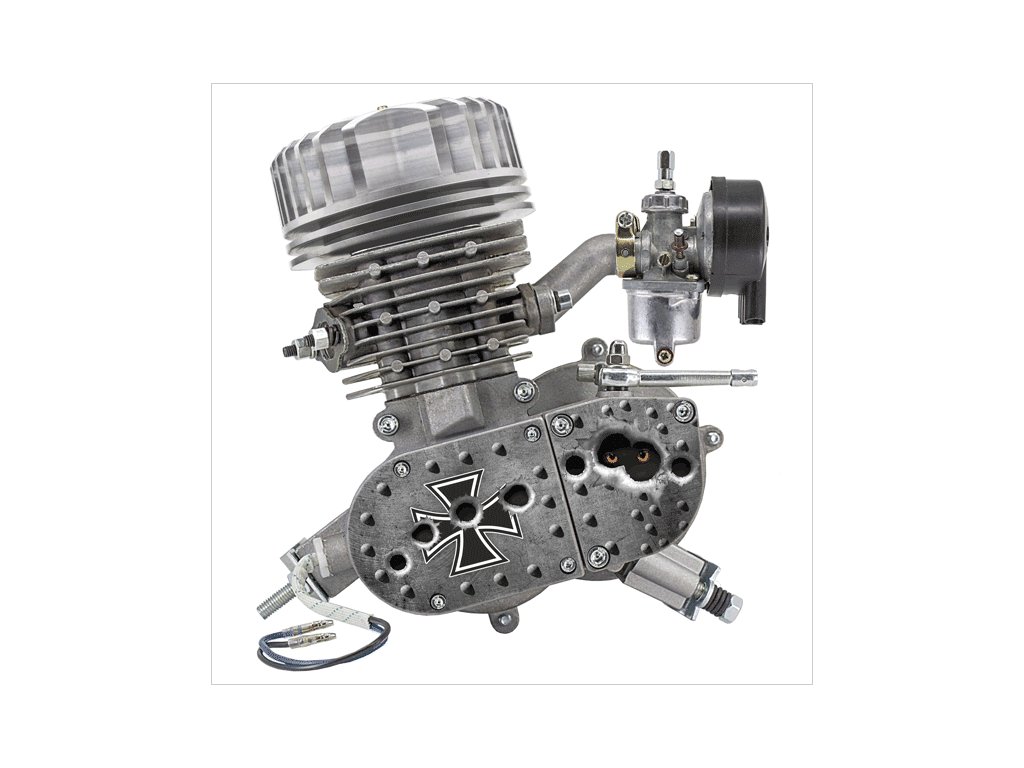 Přídavný motor FIRE HORSE na jízdní kolo s veškerým příslušenstvím pro kompletní montáž s obsahem 80 ccm - GTX válec + Hlava ALUMINIUM CNC SUPER COOLER, ojniční bronzové ložisko, UV tvrzený potisk