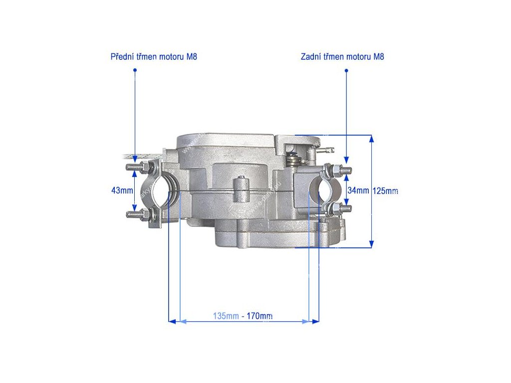 - Svorníky pro pevné uchycení motoru do rámu kola M8 vpředu i vzadu