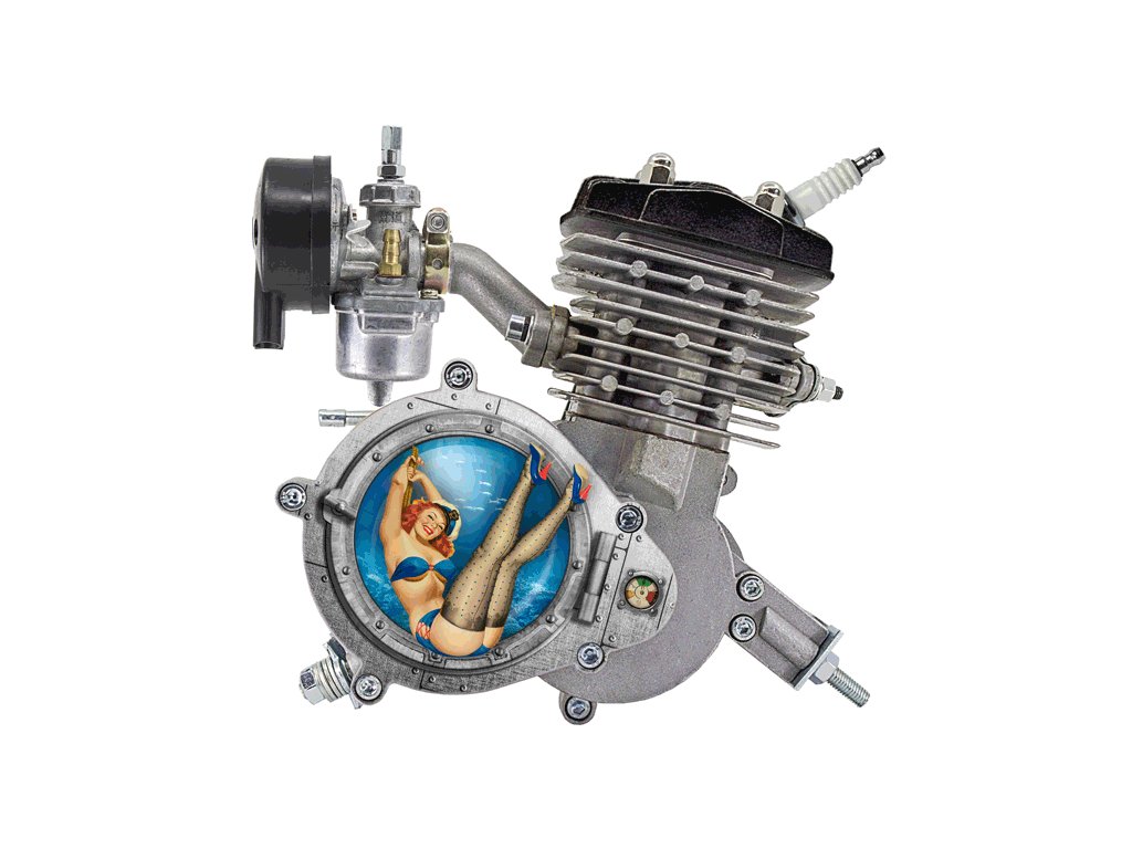 Přídavný motor FIRE HORSE na jízdní kolo s veškerým příslušenstvím pro kompletní montáž s obsahem 80 ccm - GTX válec + Hlava SKY HAWK, ojniční bronzové ložisko, UV tvrzený potisk