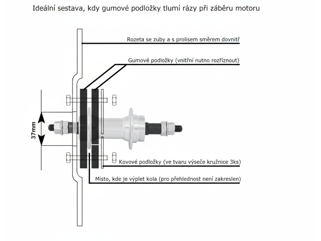 - Svorníky pro pevné uchycení motoru do rámu kola M8 vpředu i vzadu