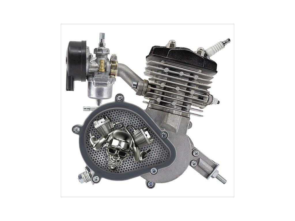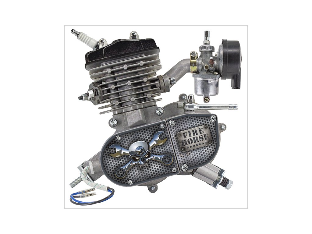 Přídavný motor FIRE HORSE na jízdní kolo s veškerým příslušenstvím pro kompletní montáž s obsahem 80 ccm - GTX válec + Hlava SKY HAWK, ojniční bronzové ložisko, UV tvrzený potisk