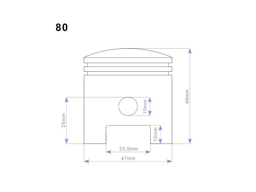 Náhradní píst určený pro dvoutaktní motory o obsahu 80 ccm, které se využívají jako přídavné motory pro jízdní kola.