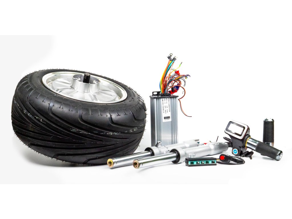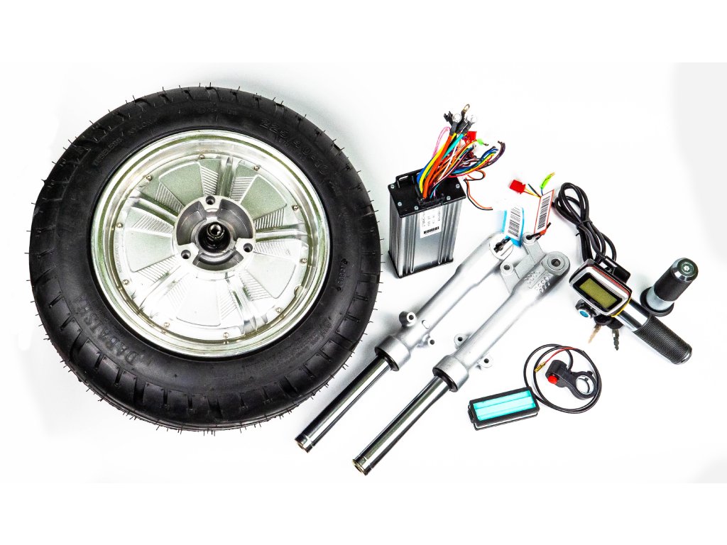 Kompletní 1000W přední sada pro přestavbu jednomotorových koloběžek - přední přídavný motor Boshel o výkonu 1000W včetně kola, pláště a příslušenství pro elektrokoloběžky - stříbrná