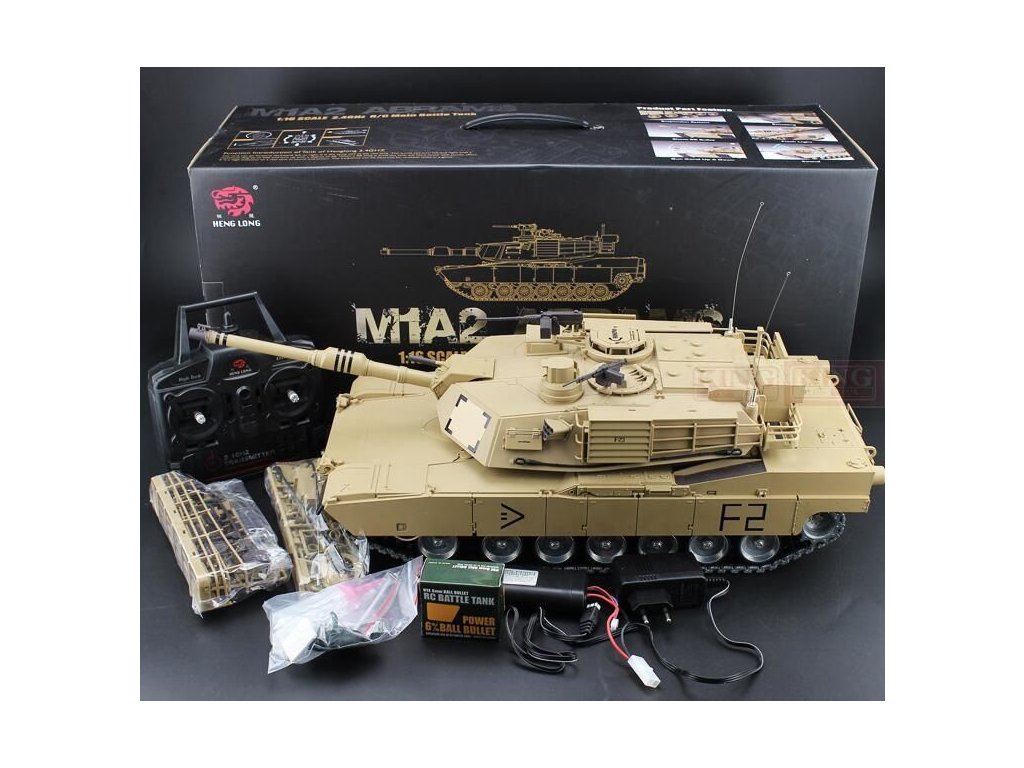 Tank v pouštní žluté barvě a měřítku 1:16 s dosahem ovladače až 50 metrů obsahuje unikátní infračervený bojový systém, který umožňuje souboj více tanků najednou, ocelové doplňky včetně předního kovového krytu, kovového hnacího kola a kovového indukčního kola, díly, pásy apod. Tank operuje na frekvenci 2,4 GHz (může podporovat více současných operací), baterie 7,4 V 1800 mAh lithium, doba nabíjení je cca 4 hodiny, čas jízdy tanku cca 40 minut. Funkce: vpřed, zrychlení vpřed, vzad, zrychlení ústupu, rotace, spuštění BBS a proti nárazu - zákluz hlavně (při výstřelu tank imituje zpětný ráz zákluzem hlavně), zvedání hlavně 30 stupňů, otáčení věže 320 stupňů, simulace zvuku (chod motoru, střelba, skřípání pásů), proporcionální funkce dálkového ovládání (plynule přidává rychlost podle pohybu páček na ovladači), kouřové efekty motoru (dolévací kapalina), super podvozek, realistický systém odpružení, kdy každé kolo je samostatně odpružené a díky tomu se jízda v terénu stává skutečným zážitkem.