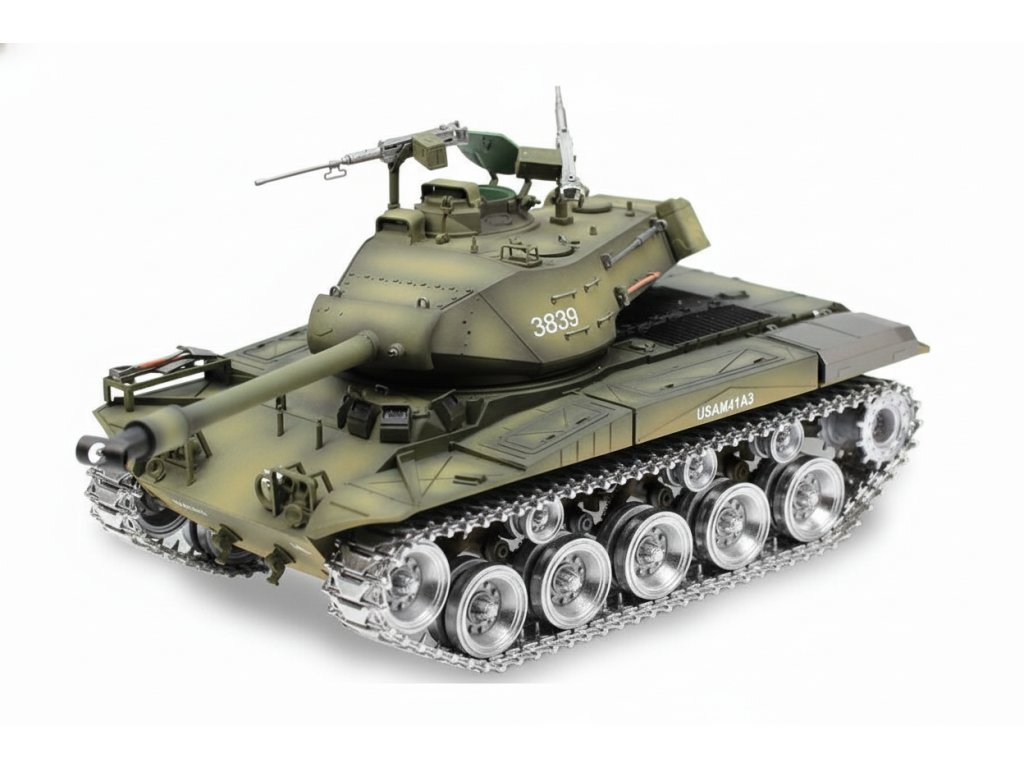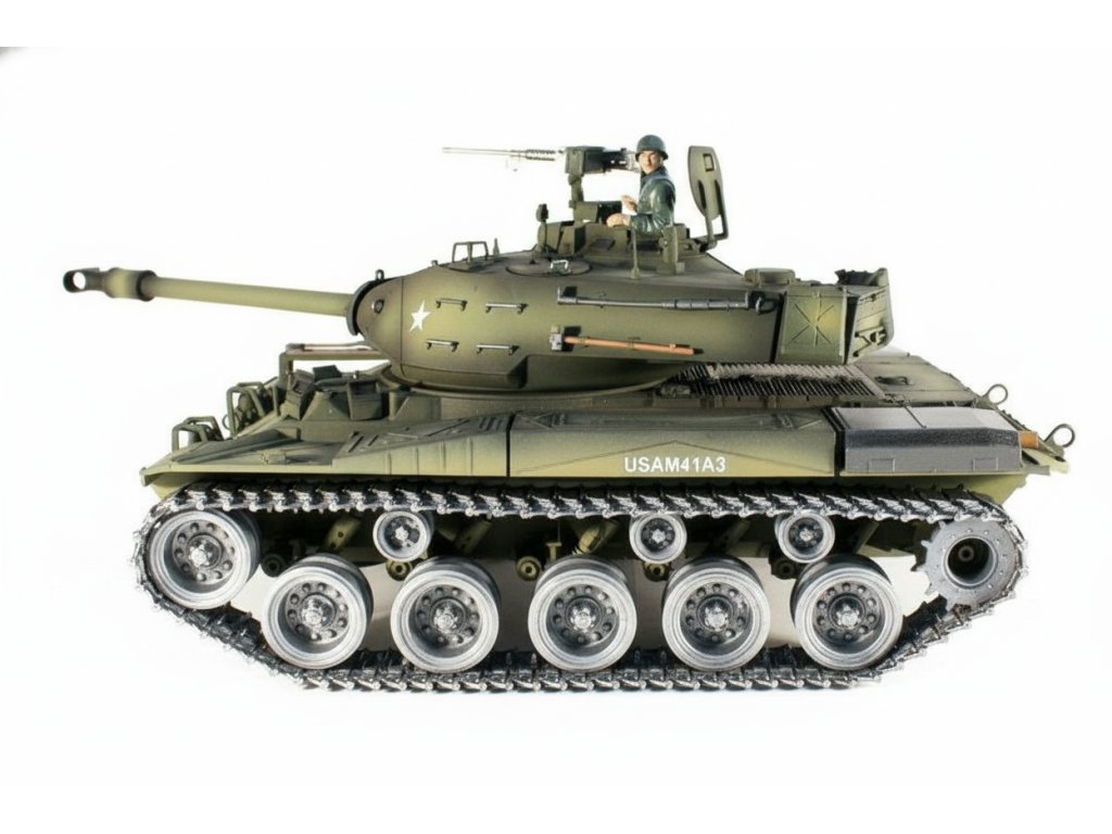 RCTANK U.S.M41A3 (Walking Bulldog) 1:16 - kovové pásy, ocelová převodovka, kovové hnací kolo, kouř. a zvuk. efekty, střílí kuličky